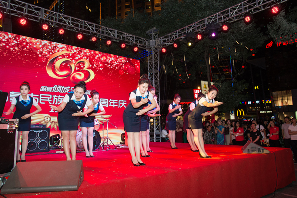 9月9日晚,庆祝民族商场63周年店庆大型文艺演出活动在民族商场东楼前隆重举行,现场气氛震撼火爆,节目精彩纷呈。