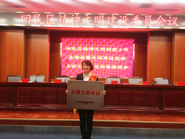回民区文明委为民族商场荣获全国文明单位隆重授匾