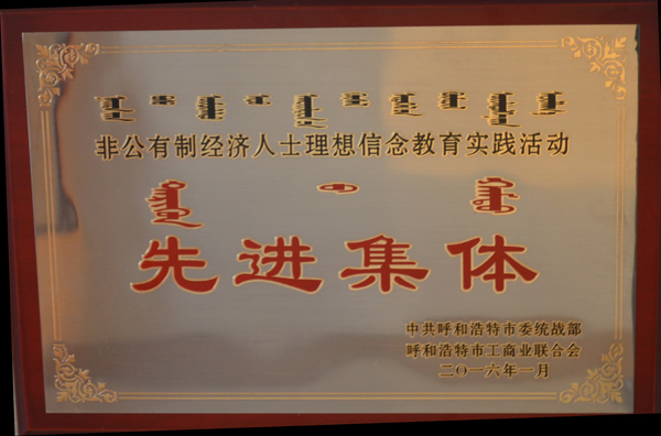 集团公司荣获“全市非公有制经济人士理想信念教育实践活动先进集体”